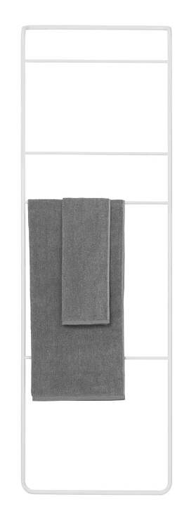 Die Handtuchleiter - MODO - White von Blomus bietet eine angenehme Haptik durch den weißen Titanüberzug, dieser ist strapazierfähig, korisionsressistent, kratzfest und langlebig. Durch ihre klassischste Farbe aller Zeiten verleiht sie in Ihrem Badezimmer oder Gästebadezimmer eine Atmosphäre von Ruhe, Entspannung und Selbstpflege. Die Leiter wird einfach mit ihrem oberen abgerundeten Teil an die Wand gelehnt, es ist keine Befestigung für die Wand vorhanden. Somit sind Sie flexibel und können die Handtuchleiter MODO in Ihrem Bade- oder Gästebadezimmer überall platzieren und kombinieren. Handtücher und Duschtücher können schnell getrocknet und aufbewahrt werden. Kleine Gummifüße sichern den Stand der Handtuchleiter - MODO - White von Blomus vor dem Verrutschen.
