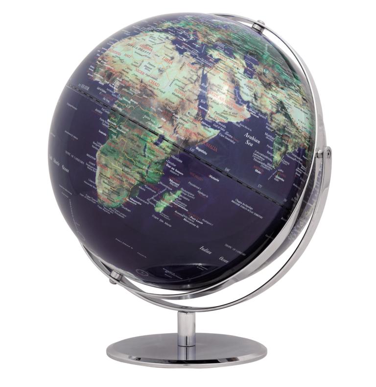 Der Globus Juri und der Globus Saturn, ist für alle, die neben einem aktuellen Kartenbild auch ein modernes Design haben möchten, besonders geeignet. Der Globus ist 2-achsig und deshalb in verschiedenen Richtungen drehbar. Der Globus ist mit hochwertigem Metall ausgestattet, das ihm eine ganz besondere Eleganz verleiht.