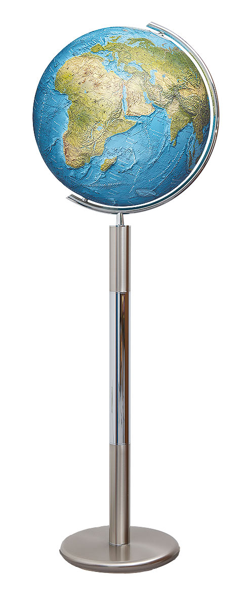 Beleuchtet strahlt es mit seiner harmonischen Farbgebung eine besondere Wärme aus und unterstreicht den traditionellen Charakter der entsprechend ausgestatteten Globen und zeigt Ihnen detailliert die Gebirgszonen und Höhenzüge unserer Erde.