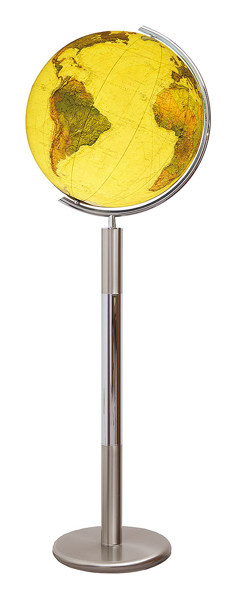 Beleuchtet strahlt es mit seiner harmonischen Farbgebung eine besondere Wärme aus und unterstreicht den traditionellen Charakter der entsprechend ausgestatteten Globen und zeigt Ihnen detailliert die Gebirgszonen und Höhenzüge unserer Erde.
