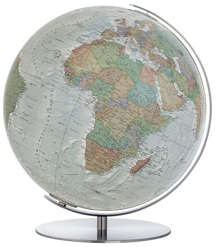 Beleuchtet strahlt es mit seiner harmonischen Farbgebung eine besondere Wärme aus und unterstreicht den traditionellen Charakter der entsprechend ausgestatteten Globen und zeigt Ihnen detailliert die Gebirgszonen und Höhenzüge unserer Erde.