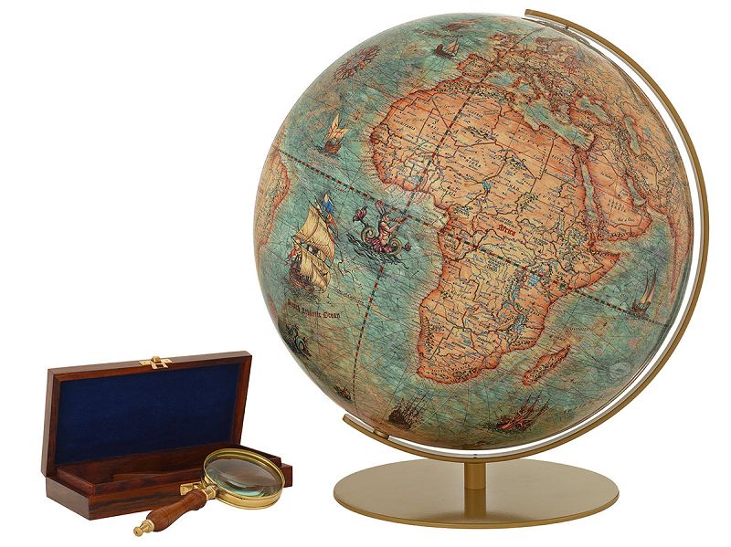 Faszinierende Fregatten, gefährliche Seeungeheuer, wunderschöne Windrosen oder internationale Flaggen entführen den Betrachter in eine historische Welt. Lassen auch Sie sich verzaubern und erlauben Sie dem neuen IMPERIAL Globus Sie in seinen Bann zu ziehen.
