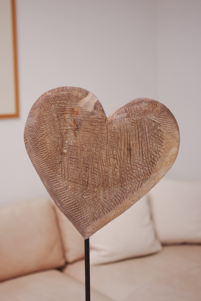 Das Holzherz grau auf Eisenständer von WMG ist ein Unikat geschnitztes Dekoherz in edlem grau. Aus Pappelholz gefertigt wurde das Deko-Herz, welches sowohl in Kombination mit rustikalen, als auch modernen Wohnaccessoires wunderschön aussieht. Das Herz mit Ständer hat eine Gesamthöhe von 90 cm. Lackiert ist der Ständer mit einem hochwertigen, schwarzbraunen Lack. Da das Herz aus echtem Holz hergestellt wurde können Trocknungsrisse entstehen.