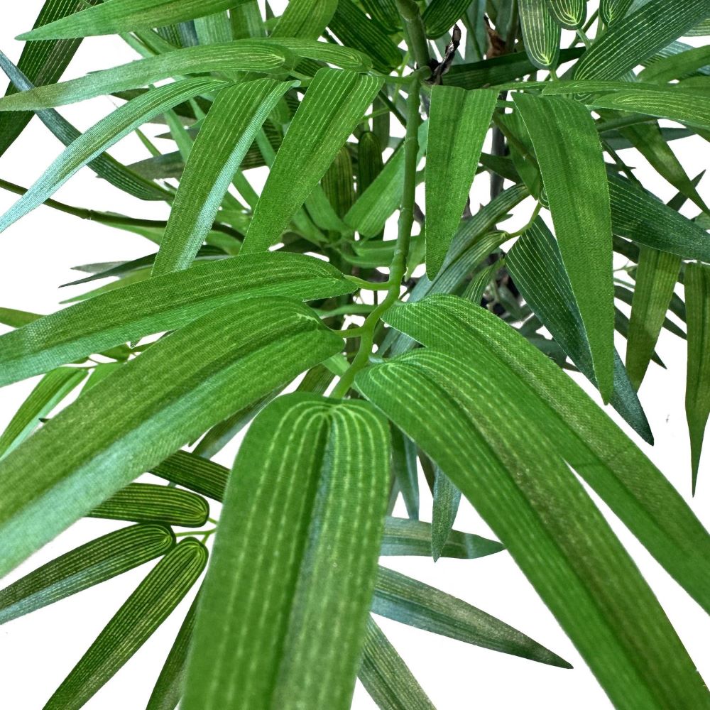 Die kunstvoll gestalteten, schlanken Stängel und dichten Blätter sehen aus wie echte Bambus-Pflanzen und fügen sich mühelos in verschiedene Dekorationsstile ein. Sie ist besonders pflegeleicht und allergiefreundlich, da sie keinerlei Bewässerung oder besondere Lichtverhältnisse benötigt.