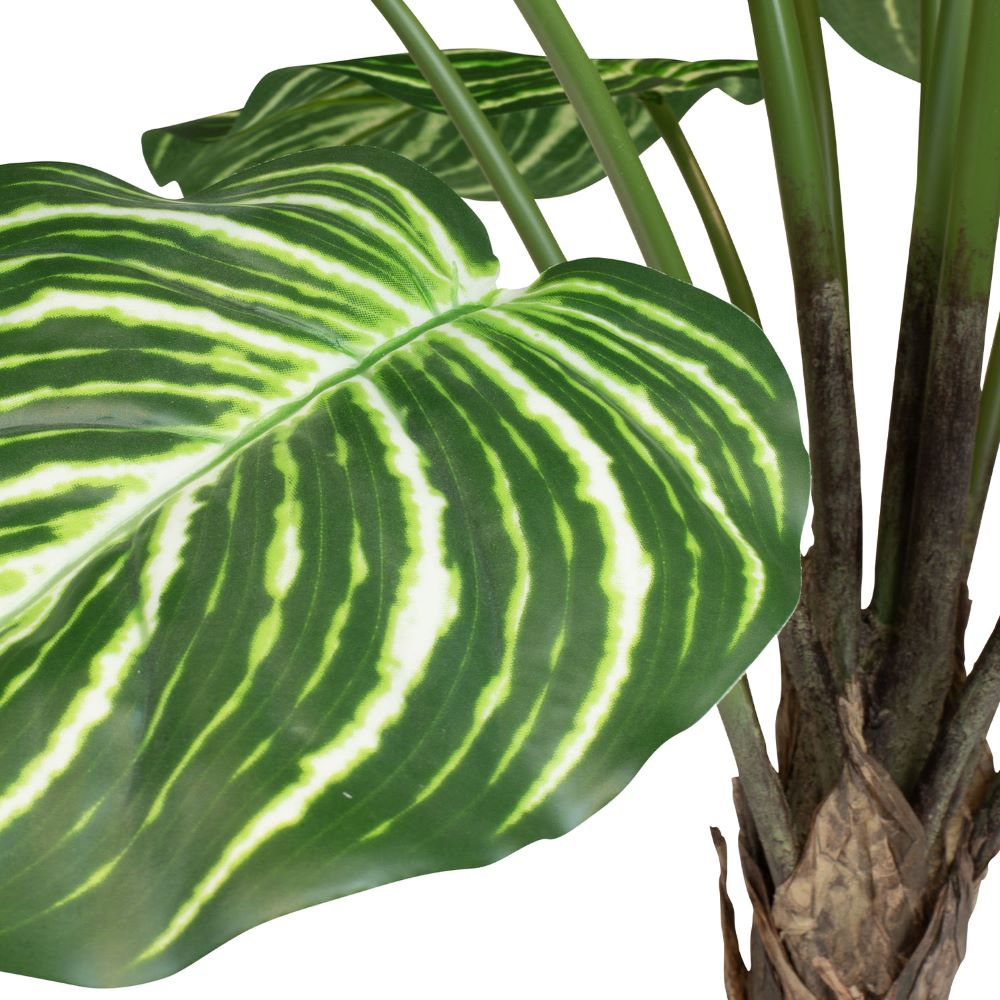Vielseitig einsetzbar: Die Calathea Kunstpflanze ist eine hervorragende Wahl für verschiedene Umgebungen – sei es im Wohnzimmer, im Büro oder in Empfangsbereichen. Ihre natürliche Erscheinung verleiht jedem Raum eine erfrischende und grüne Note, die das Ambiente aufwertet.
