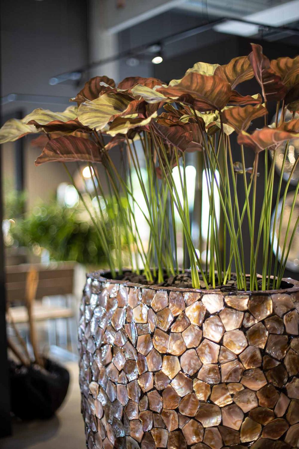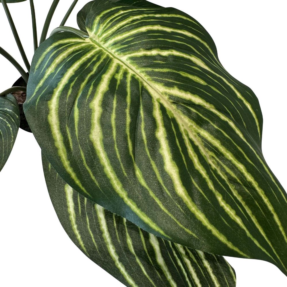 Hergestellt aus hochwertigen, UV-beständigen Materialien, behält die Calathea ihre intensiven Farben und authentischen Strukturen selbst bei längerer Sonneneinstrahlung. Dadurch eignet sie sich ideal für die Dekoration von Wohnräumen, Büros oder öffentlichen Bereichen, wo sie dauerhaft für ein frisches, grünes Ambiente sorgt.