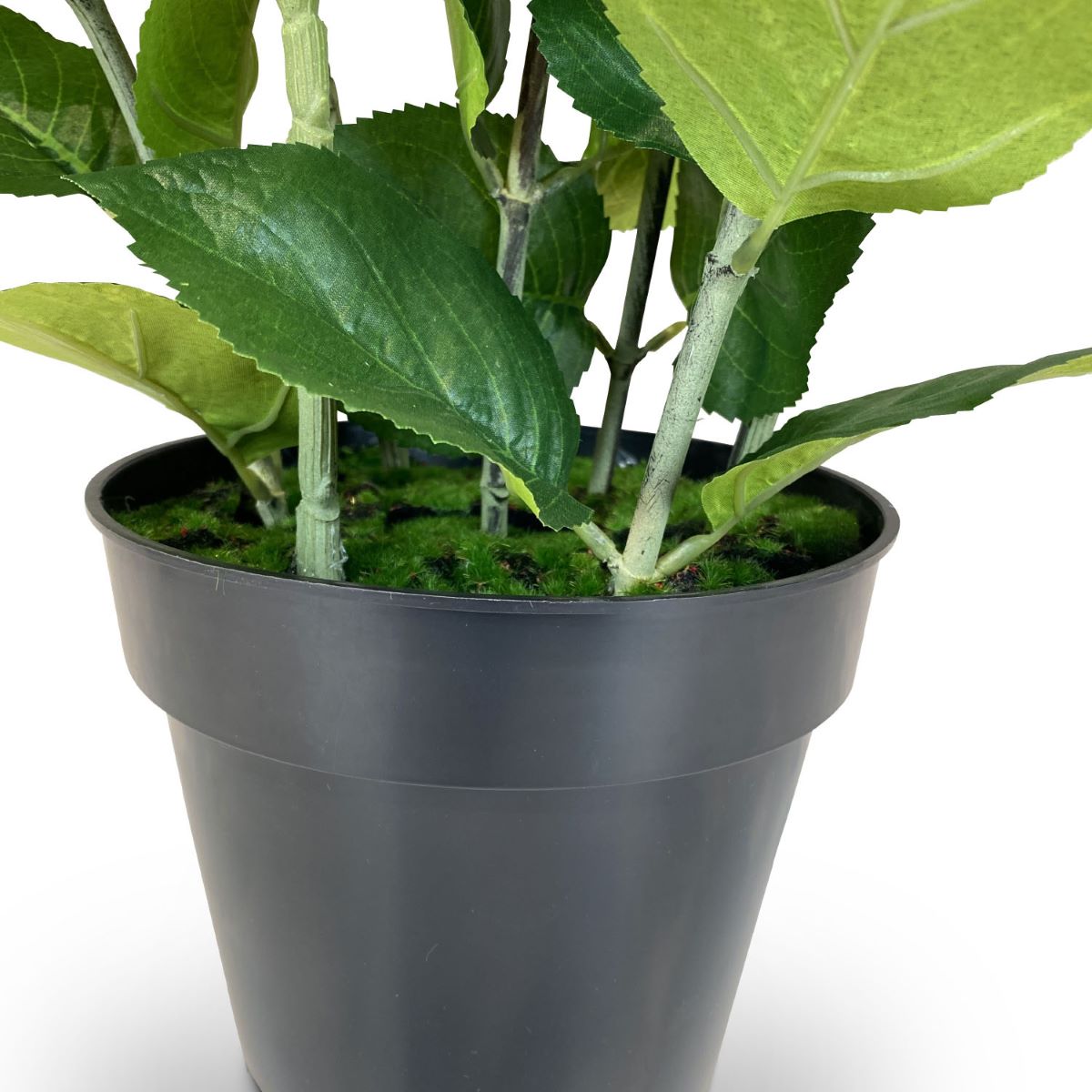 Die Hortensie - Hydrangea Kunstpflanze von Fleur Ami verleiht Ihren Räumen einen Hauch natürlicher Eleganz. Diese 66 cm hohe, künstliche Hortensie beeindruckt durch ihre drei naturgetreu nachgebildeten, grünen Blüten, die selbst bei näherer Betrachtung kaum von echten Blüten zu unterscheiden sind.