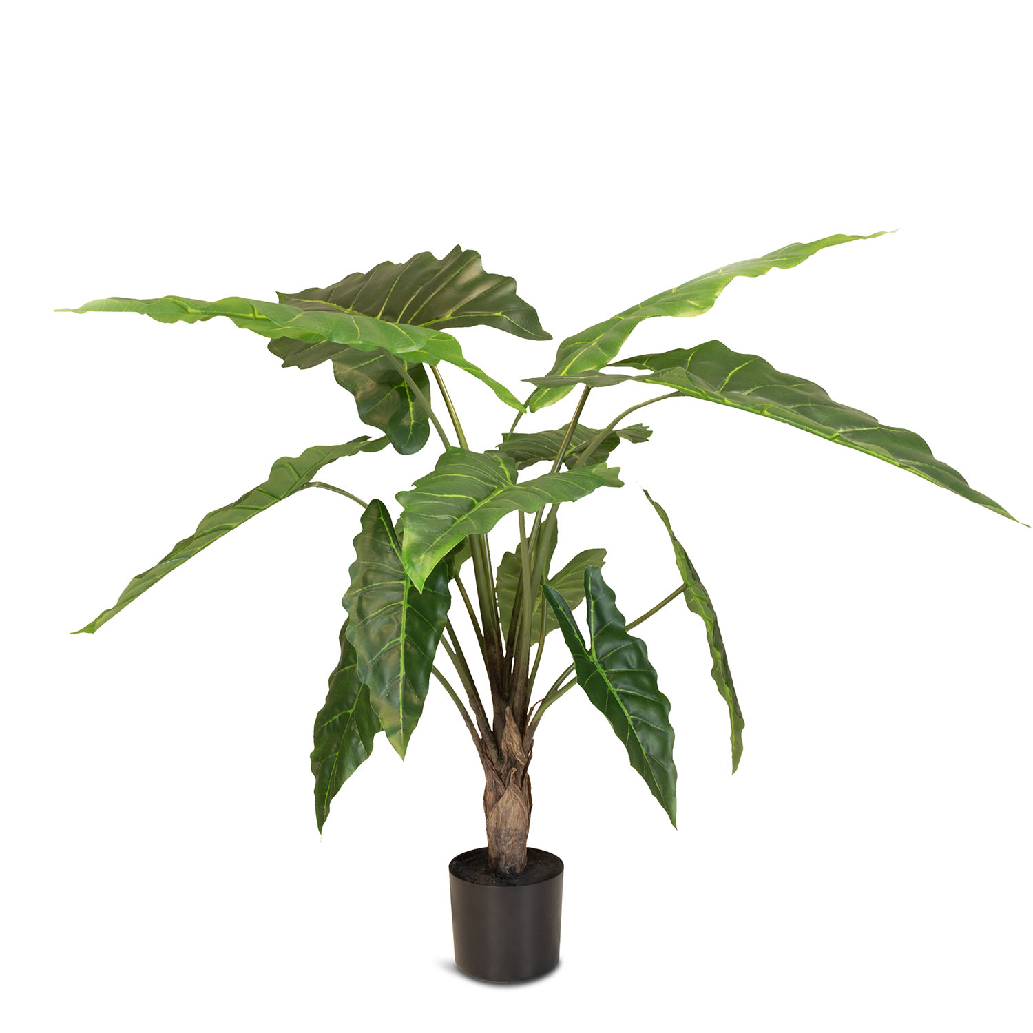 Die Pfeilblatt - Alocasia Kunstpflanze von Fleur Ami bringt mit ihrem beeindruckenden Design und ihrer praktischen Handhabung einen Hauch von exotischem Flair in Ihre Räume. Diese 80 cm hohe Kunstpflanze ist ideal, um jedem Innenbereich eine grüne und tropische Note zu verleihen.