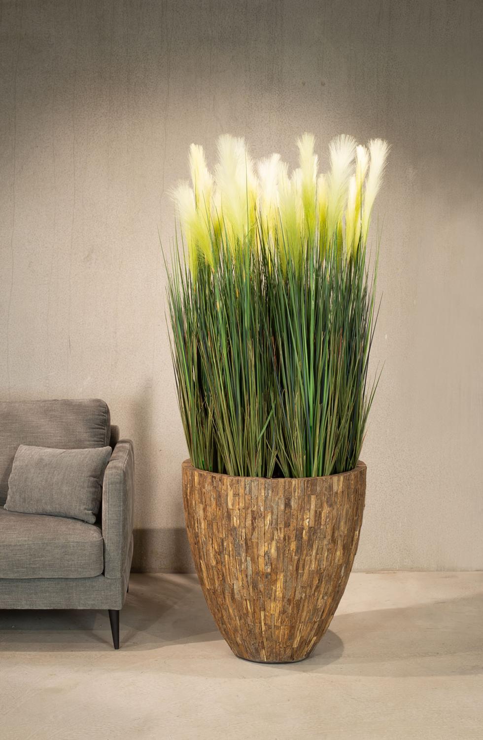 Suchen Sie etwas Besonderes, um Ihr Zuhause oder Ihr Büro zu verschönern? Dann sehen Sie sich unsere Kunstpflanze Rohrkolben (Typha) von Fleur Ami an. Diese detailgetreue Nachbildung sieht so natürlich aus, dass Sie den Unterschied zu echten Gräsern kaum bemerken werden. Außerdem ist unsere Pflanze eine flexible und langlebige Alternative, die jahrelang hält. Die hochwertige Verarbeitung sorgt dafür, dass unsere Rohrkolbenpflanze aus jedem Blickwinkel gut aussieht. Das künstliche Gras ist in drei Größen erhältlich, sodass Sie die perfekte Pflanze für Ihren Raum auswählen können. Verleihen Sie Ihrer Einrichtung noch heute einen Hauch von natürlicher Schönheit mit unserer Rohrkolben (typha) Kunstpflanze von Fleur Ami.