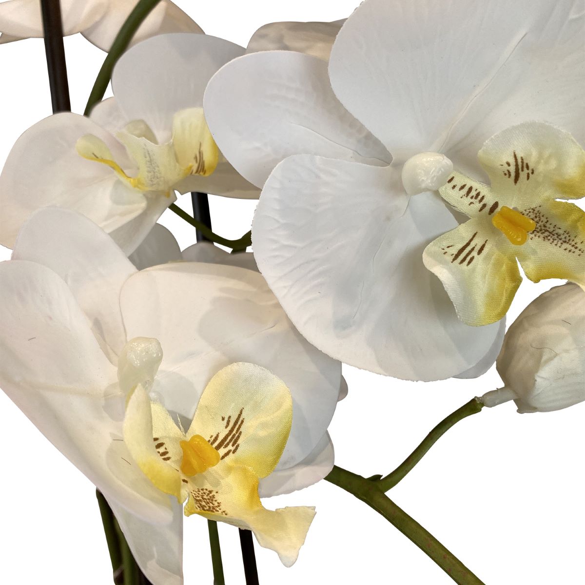 Die weiße Orchidee ist aus hochwertigen Materialien gefertigt, die nicht nur für ein dauerhaft frisches Aussehen sorgen, sondern auch für eine lange Lebensdauer der Pflanze garantieren. Ob auf einem Tisch, Regal oder als Teil eines dekorativen Arrangements – diese Orchidee bringt Farbe und Eleganz in Ihr Zuhause oder Ihre Geschäftsräume und bleibt stets in makellosem Zustand.