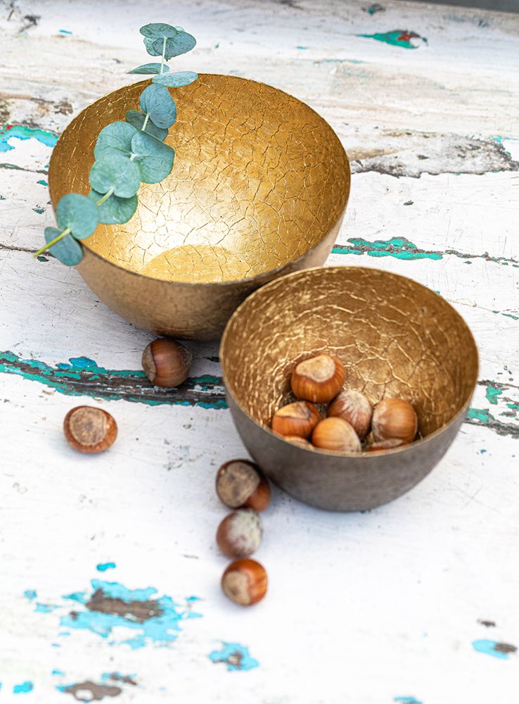 Diese Schale wurde in Indien unter Verwendung hochwertigster Materialien meisterhaft gefertigt. Ihr klassisches und zeitloses Design wird sicher für Gesprächsstoff sorgen - Sie müssen sich keine Sorgen machen, dass sie bald veraltet sein könnte! Ganz gleich, ob Sie auf der Suche nach einem einzigartigen Dekorationsgegenstand oder nach etwas Funktionellem sind, mit der Lichtschale sind Sie bestens bedient. Verwenden Sie sie als Tafelaufsatz auf Ihrem Esstisch oder als raffinierte Aufbewahrung für Schlüssel und andere wichtige Dinge in Ihrem Eingangsbereich - sie ist für beide Szenarien und alles dazwischen perfekt!