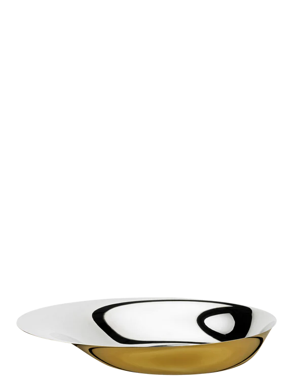 Erleben Sie Eleganz mit der Norman Foster Schale Ø 36 cm von Stelton. Gefertigt aus poliertem Edelstahl und mit einer wunderschönen Goldfarbe auf der Unterseite verziert, ist diese formschöne Schale die perfekte Ergänzung für jedes Zuhause. Sie verleiht nicht nur jedem Interieur einen Hauch von Glamour, sondern eignet sich auch hervorragend als Dekorationsobjekt oder als Servierschale. Die Schale wurde von Architekt und Designer Norman Foster entworfen und wird bei Ihren Gästen mit Sicherheit einen bleibenden Eindruck hinterlassen. Mit einem Durchmesser von 36 cm bietet die Schale ausreichend Platz für verschiedene Dekorationsgegenstände oder eignet sich perfekt für das stilvolle Anrichten von Obst, Snacks oder anderen Leckereien bei besonderen Anlässen. Dank des hochwertigen Materials ist die Schale langlebig und pflegeleicht.