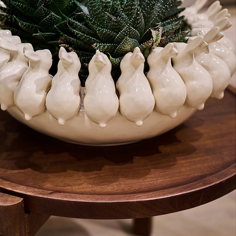 Durch die hochwertige Verarbeitung aus Keramik ist die Schale robust und langlebig. Sie passt perfekt in verschiedenste Einrichtungsstile und lässt sich mühelos mit anderen Accessoires kombinieren. Ob auf dem Esstisch, der Anrichte oder dem Couchtisch – die Schale "Bunnies" fügt sich überall harmonisch ein und verleiht Ihrem Zuhause eine warme, einladende Atmosphäre.