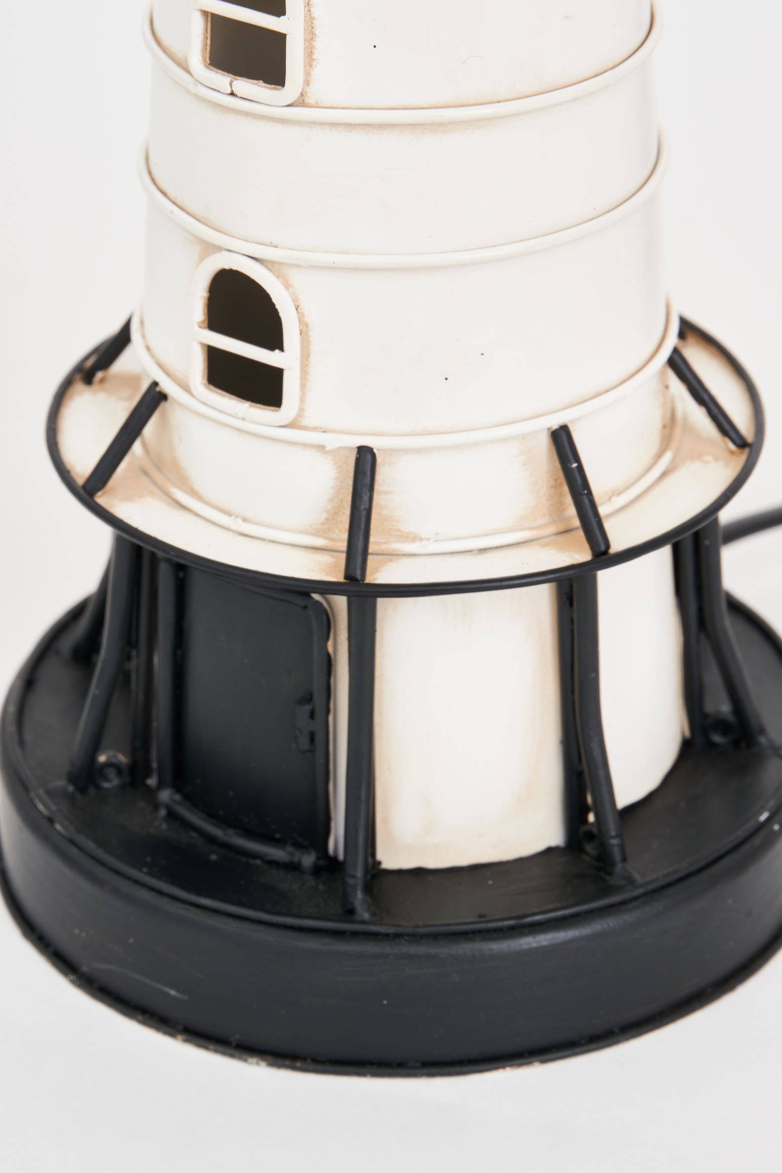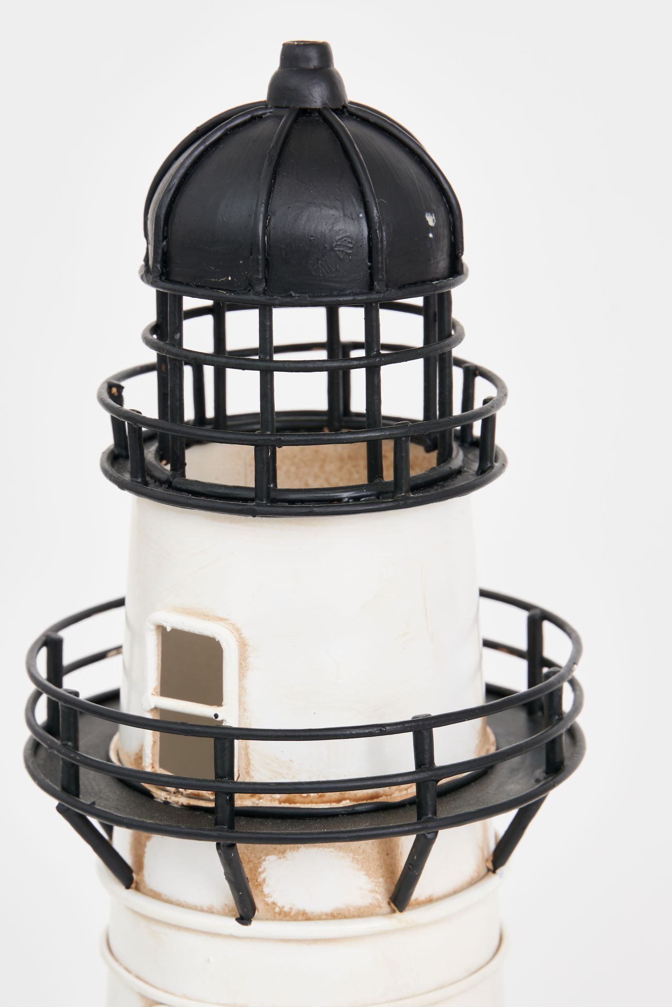 Leuchtturm aus Metall mit LED – 32 cm, schwarz-weiß von Batela