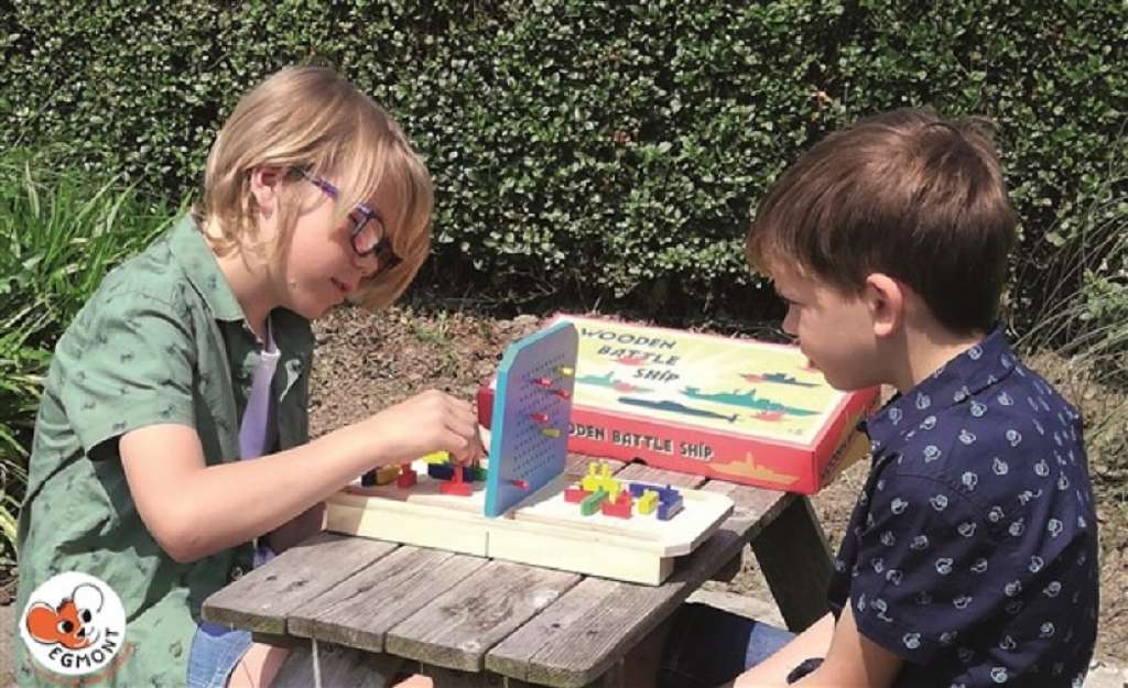 Das Schiffe versenken von Egmont Toys bringt den Zweispielerklassiker in Holzfassette auf Ihren Tisch.