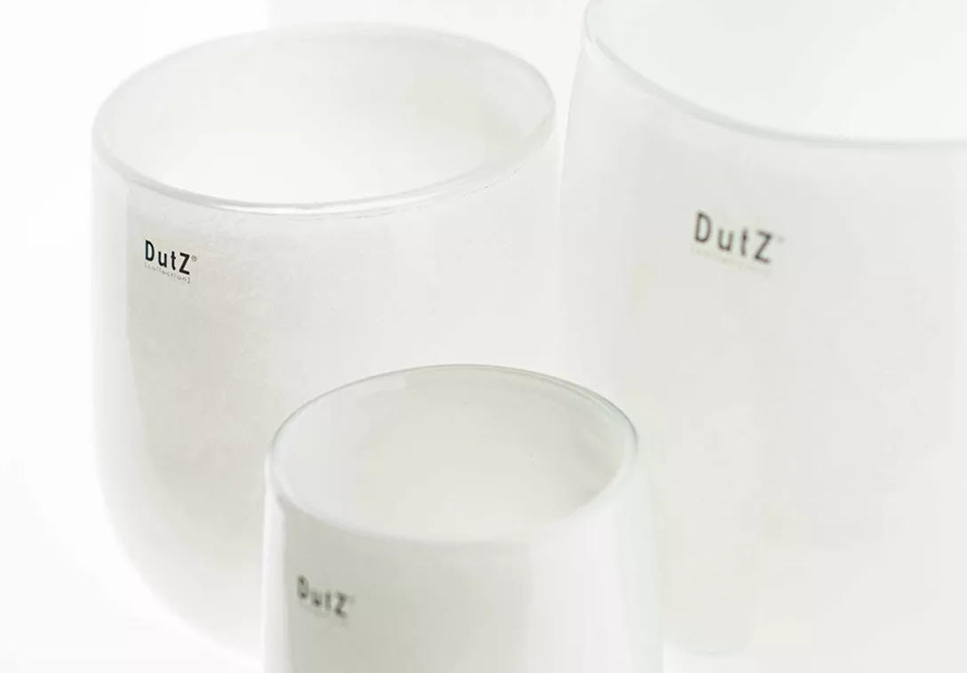Die Vase - Barrel H24cm; ∅ 18 cm, white von DutZ ist eine mundgeblasene Vase mit hoher Qualität. Das Glas der Vase ist dick und wurde in Europa hergestellt. Die weiße Vase ist geeignet für Blumensträuße, Orchideen oder Sukkulenten. Durch die runde Form der Blumenvase eignet sich die Barrel Vase auch als Glaswindlicht für gemütliche Abende. Der Glastopf ist nicht nur Dekoration für Blumen und Kerzen, sondern sieht auch mit Pflanzen dekorativ schön aus. Dekorieren Sie die Vase - Barrel H24cm; ∅ 18 cm, white von DutZ auf einer Fensterbank oder auf einem Sideboard in Ihrem Zuhause. Auch für Praxis- oder Geschäftsräume eignet sich die Vase hervorragend.