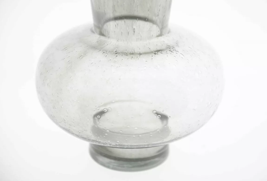 Mit dieser einzigartigen Glasvase können Sie stilvolle Blumensträuße zusammenstellen, einen Bereich mit geschmackvollem Dekor hervorheben oder einen Blickfang schaffen, der für Gesprächsstoff sorgt. Die dezenten grauen Blasen verleihen ihr zusätzlichen Charme und Charakter und machen sie zu einem idealen Accessoire für jeden Raum. Und wenn Sie einen völlig neuen Look für sich selbst oder Ihren Raum wünschen, ist dieses hochwertige und ausgefallene Kunstwerk genau das Richtige für Sie!