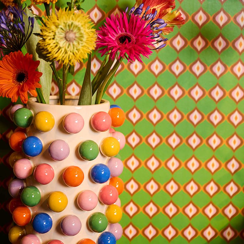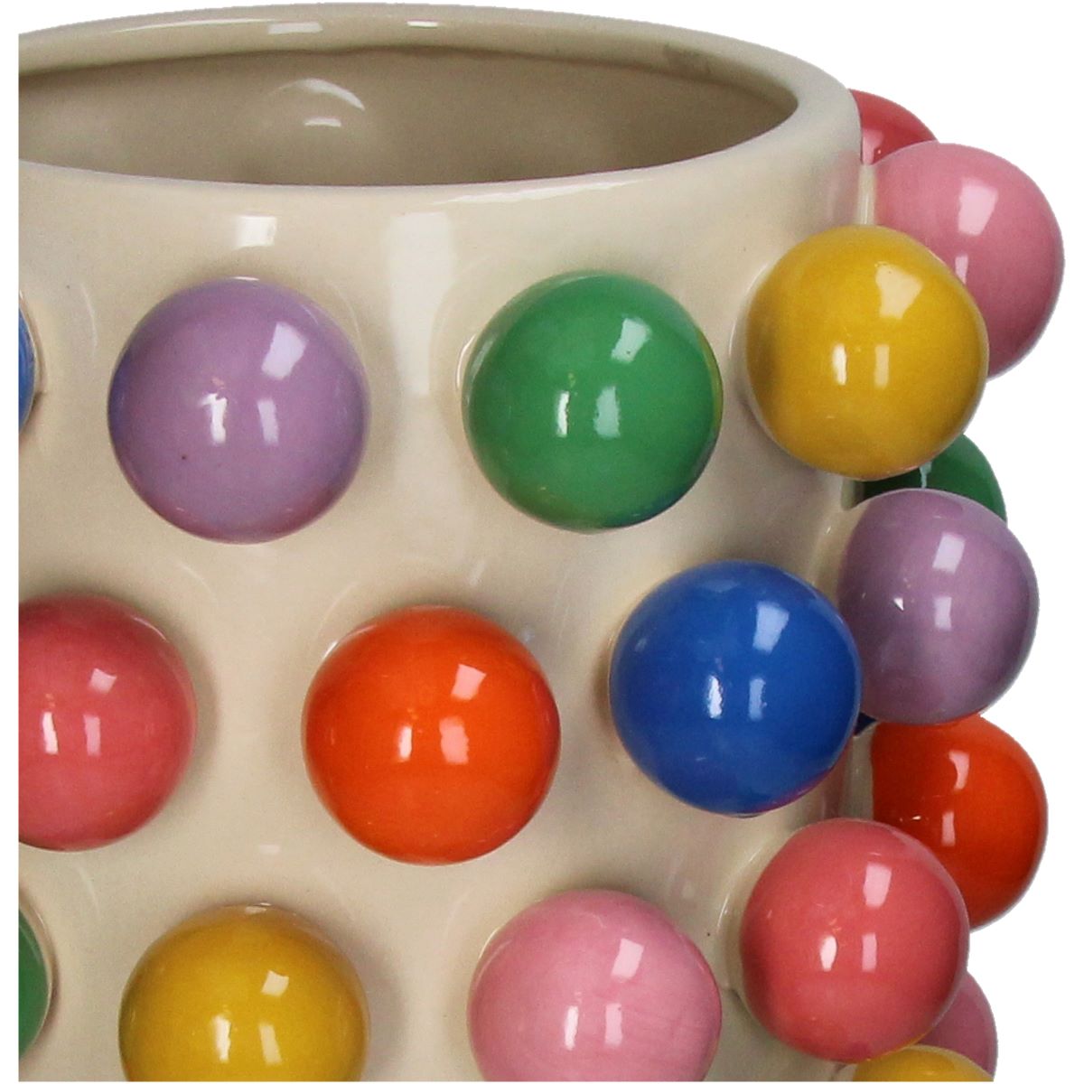 Das bunte Pflanzgefäß "Balls" von Kersten ist ein lebhaftes Dekorationsstück, das jedem Raum Farbe und Frische verleiht. Erhältlich in zwei praktischen Größen, ist dieses Pflanzgefäß sowohl für kleine Pflanzen als auch für größere Sträuße geeignet. Mit seinem modernen, bunten Design wird es garantiert zum Blickfang in Ihrem Zuhause.