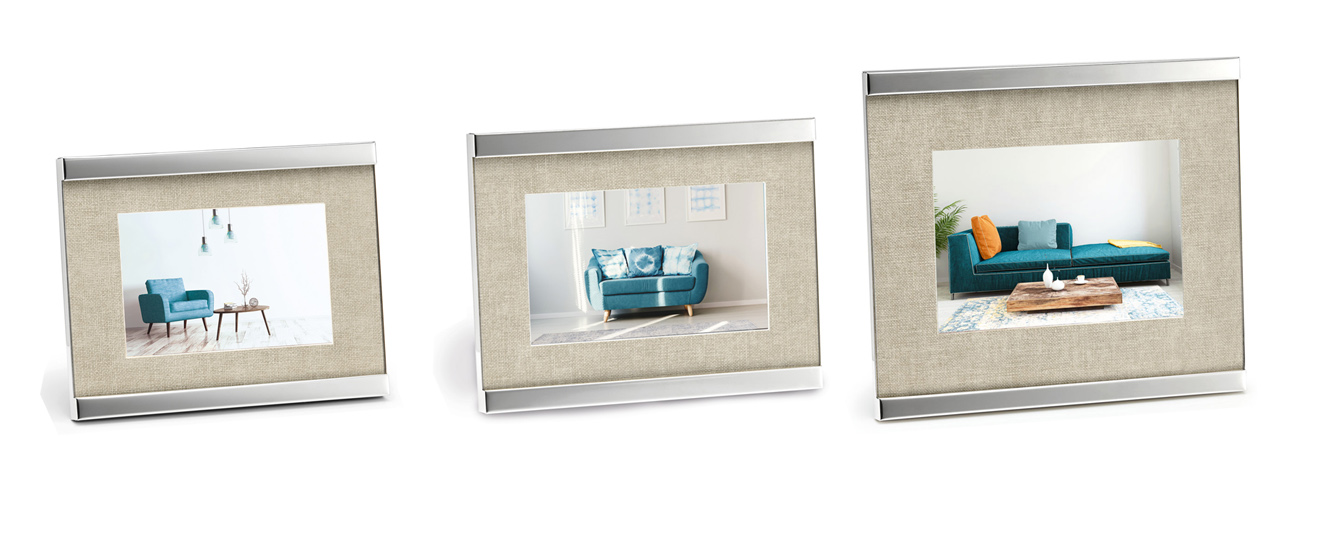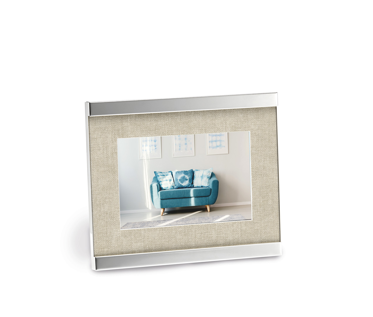 Der Home Bilderrahmen von Philippi strahlt eine Besonderheit durch seine zwei verschiedenen Oberflächen aus. Blankes Metall und eine raue, organische Bildoberfläche treffen aufeinander. Das ausgefallene Leinen-Passepartout ist exzellent verarbeitet und verspricht eine hochwertige Qualität. Ihre Lieblingsbilder werden in diesem modernen Bilderrahmen einen stilsicheren Auftritt erlangen. Sie können den Home Bilderrahmen mit Ihrem Lieblingsbild in Ihrem Wohnzimmer dekorieren oder im Eingangsbereich platzieren und kombinieren. Durch Aufstellen verschiedener Größen des silbernen Home Bilderrahmens ergibt sich in Ihrem Zuhause ein stilsicheres Gesamtbild.