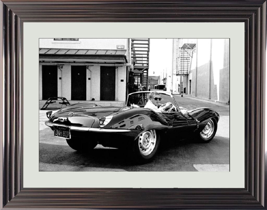 Mit dem Bild McQueen Jaguar von Cadr Aven holen Sie sich zwei Klassiker nach Hause.