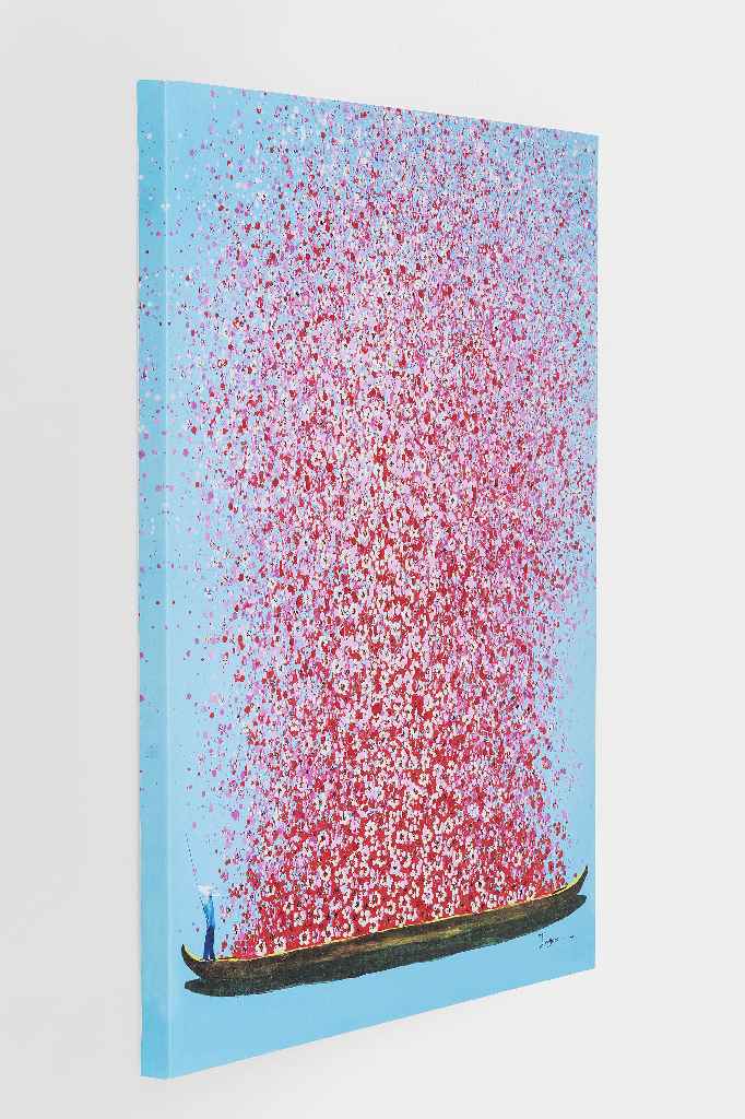 Bringen Sie Farbe und Fröhlichkeit in Ihr Zuhause mit dem rechteckigen Wandbild "Touched Flower Boat". Dieses beeindruckende Kunstwerk ist auf hochwertiger Canvas-Leinwand gedruckt und detailliert von Hand mit Acrylfarbe bemalt, was ihm eine einzigartige Oberflächenstruktur verleiht.