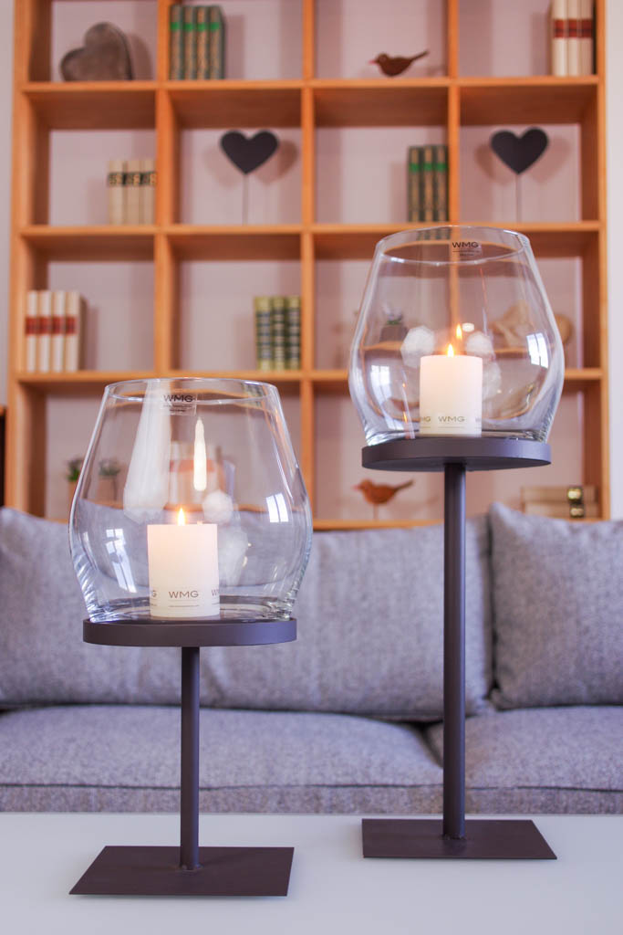 - Tische oder Kommoden können perfekt mit der kleinen Variante des Windlichtes verschönert werden.