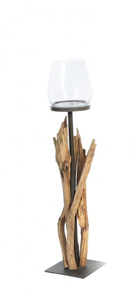 Die Kombination aus Eisen und Teak Treibholz machen das Treibholzwindlicht Raisa von WMG zu etwas ganz Besonderem. Das abnehmbare Glas steht auf einem schmalen Metallfuß, welcher von Teakholz umschlungen wird. Das verwendete naturbelassene Treibholz, sowie die Anordnung der Äste unterscheidet sich bei jedem Windlicht, wodurch jedes Eisenwindlicht zu einem einzigartigen Unikat wird. Das Windlicht aus Naturmaterialien kann in Ihrem Hauseingang, dem Wohnzimmer, aber auch in Praxisräumen einen schönen Platz finden. Erhältlich ist das Holzwindlicht in den Höhe 30 cm, 40 cm, 50 cm, 110 cm und 135 cm. Die Variante 50 cm gibt es in zwei Ausführungen, mit Ständer schmal (15 x 15 cm) oder Ständer breit (25 x 25 cm).