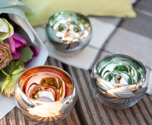 Diese Kombination aus silbernem Äußeren und farbigem Inneren bringt nicht nur einen Hauch von Eleganz in Ihre Einrichtung, sondern sorgt auch dafür, dass das flackernde Licht der Teelichter auf beeindruckende Weise reflektiert wird. Egal, ob Sie ihn als Teil einer festlichen Tischdekoration oder als stimmungsvolles Highlight in Ihrem Wohnraum einsetzen, der COLORE Teelichthalter zieht alle Blicke auf sich.