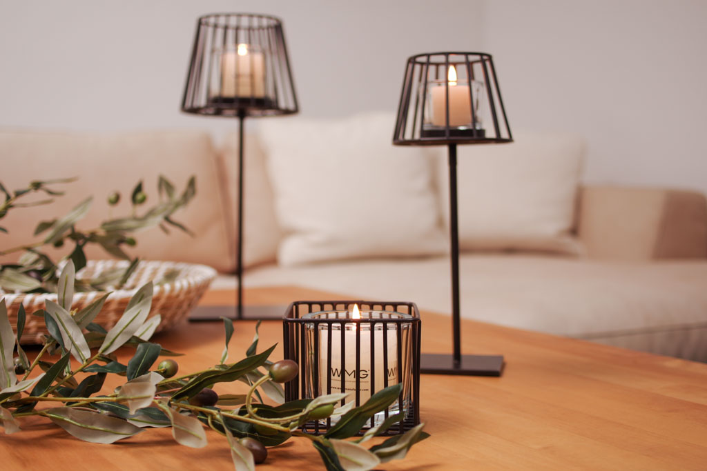 Der schwarze Teelichthalter der Wohnmanufactur Grünberger hat eine Höhe von 10 cm und eine Breite von ebenfalls 10 cm. Dekorieren Sie den Teelichthalter auf einer Kommode oder auf Ihrem Esszimmertisch in Ihrer Wohnung.