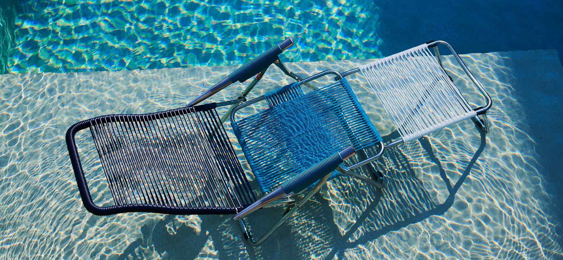 Die Fiam Spaghetti Serie bringt nostalgisches Flair und moderne Technik in Einklang. Mit ihren ikonischen, kunststoffummantelten Schnüren sorgt sie für ein einzigartiges Sitzgefühl, das leicht nachgibt und den Körper sanft unterstützt. Das filigrane Design macht die Spaghetti-Sessel und auch die Spaghetti-Liegestühle optisch luftig und leicht.