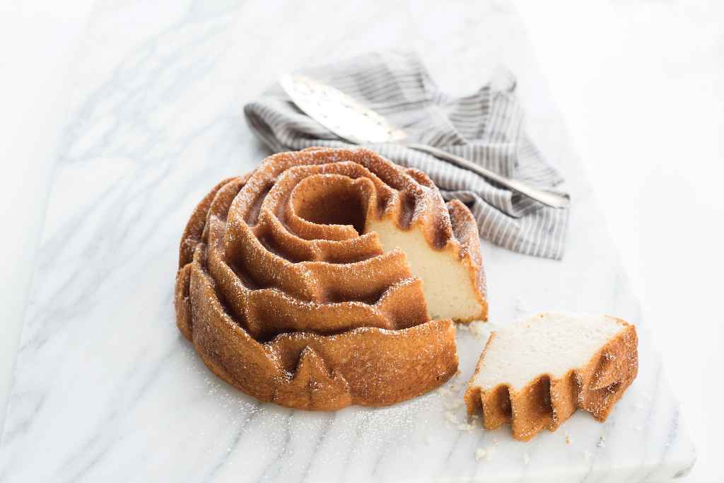 Backen Sie mit der Rose Bundt Pan von Nordic Ware einen einzigartigen Kuchen in Rosenform. Die beschichtetet Aluminiumbackform ist optimal geeignet, um wie ein Profi einen Kuchen zu backen. Die Backform ist wie eine Rose geformt und gelingt dank der Antihaftbeschichtung in jedem Fall.