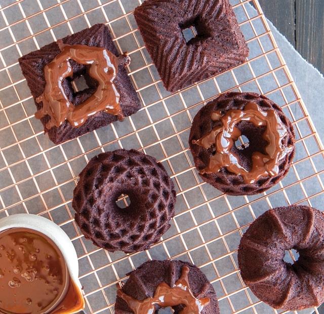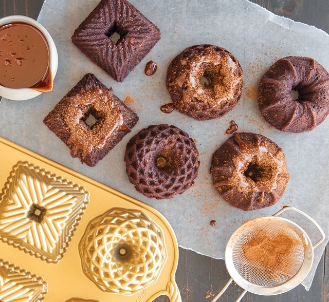 Mit der Nordic Ware Backform Geo Bundtlette Mini-Kuchen zaubern Sie zugleich 6 wundervolle kleine Gebäck oder Dessert Stücke. Die Kuchenform aus Aluminiumguss gibt Ihren 6 kleinen Küchlein 3 verschiedene Muster und Formen, diese können Sie dann mit Zuckerguss oder Puderzucker zu kleinen Gaumenfreuden gestalten, die Ihr besuchen lieben wird. Die Backform kann auch perfekt als Puddingform verwendet werden, so können Sie für Ihre Familie und Freunde beim nächsten gemütlichen beisammen sein kleine hübsche Nachspeisen zaubern. Dank der Antihaftbeschichtung gelingt der Kuchen jedes mal. Die Form nur mit einem sanften Spülmittel per Hand reinigen. Die Form ist nicht Spülmaschinen geeignet.