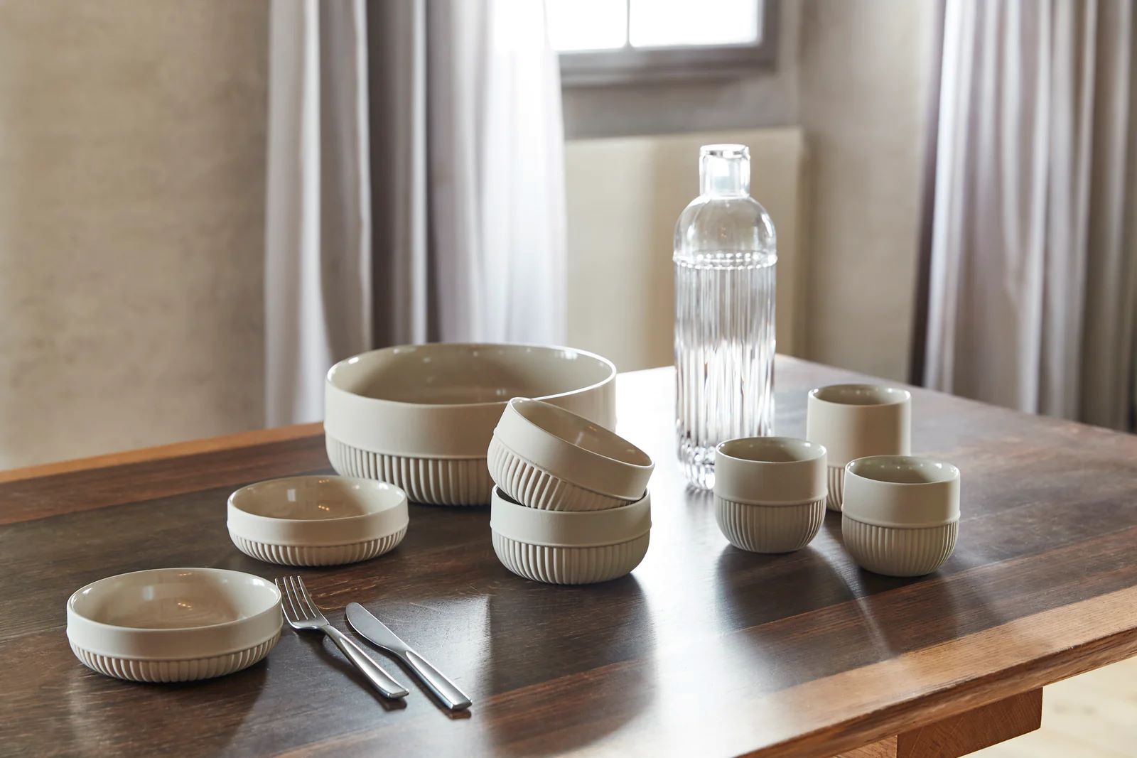 Hergestellt in Portugal, wird jeder Becher mit Sorgfalt von Hand gefertigt, was jedem Stück leichte Abweichungen in Form und Oberflächenstruktur verleiht und so den einzigartigen Charakter jedes Bechers unterstreicht. Der Root Becher ist in den Farben Beige und Cremeweiß erhältlich, und beide Varianten sind sowohl spülmaschinen- als auch mikrowellen- und gefrierschrankgeeignet.