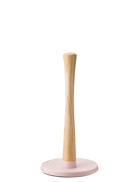 Der Küchenrollenhalter besteht aus zwei Komponenten, einmal Holz und einmal Kunststoff. Der Kunststoff hat eine besondere Beschaffenheit, was das Erscheinungsbild außergewöhnlich wirken lässt. Ein echter Hingucker in jeder Küche und auf jedem Esstisch.