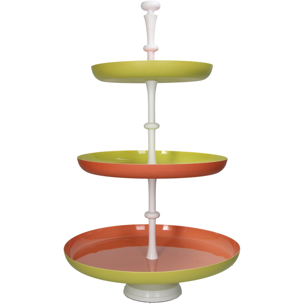 Das fröhliche Design dieser Etagere ist nicht nur ein echter Hingucker, sondern auch extrem praktisch. Die verschiedenen Ebenen bieten ausreichend Platz für eine Vielzahl von Leckereien – sei es beim Empfang von Gästen, bei besonderen Anlässen oder beim alltäglichen Frühstück. Ihre robusten Metallregale sorgen für Stabilität und Halt, während die bunten Farben Ihrem Raum eine frische, einladende Atmosphäre verleihen.