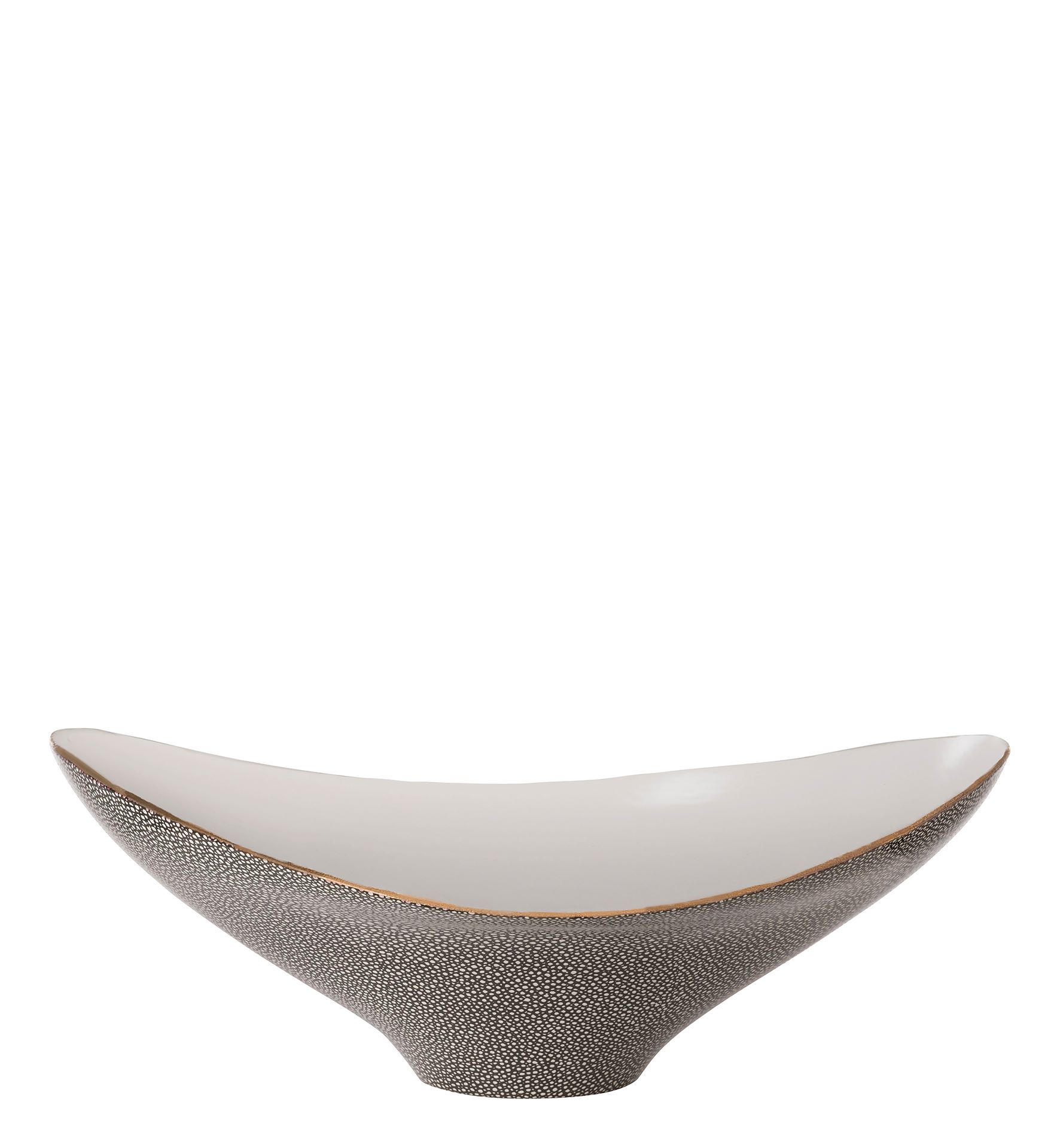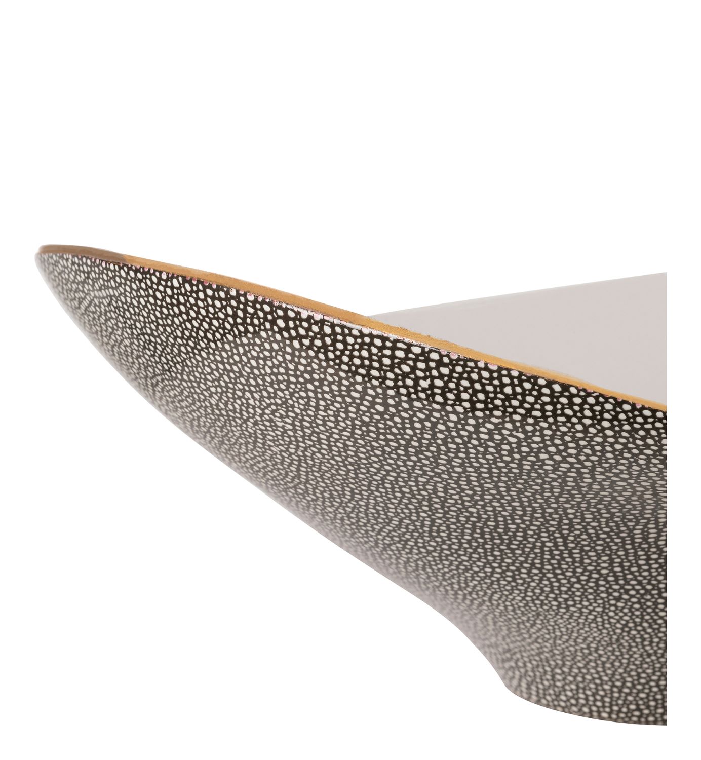 Die Gardia Servierschale aus Porzellan von Fink ist ein stilvolles Wohnaccessoire, das Natürlichkeit, Handwerkskunst und zeitloses Design harmonisch vereint. Porzellan und Keramik erleben aktuell ein beeindruckendes Revival, und die Gardia Schale ist ein Paradebeispiel für diese Wiederentdeckung klassischer Materialien. Mit ihrer glänzenden, strukturierten Oberfläche und dem edlen Grauton setzt sie in jedem Zuhause elegante Akzente. Der handbemalte, goldfarbene Rand verleiht der Schale eine luxuriöse Note und macht sie zu einem echten Blickfang.
