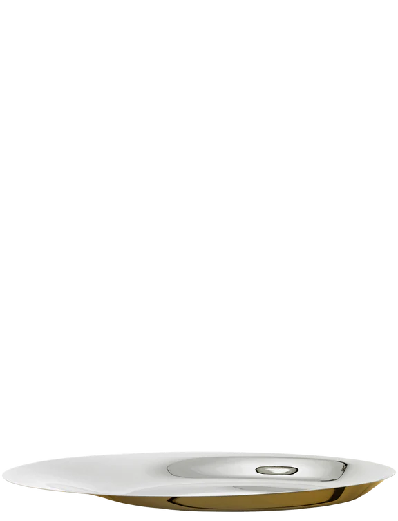 Wir präsentieren die Norman Foster Schale Ø 46 cm von Stelton! Dieses luxuriöse und stilvolle Tablett ist vom Architekt und Designer Norman Foster entworfen und eignet sich perfekt für Ihre nächste Feier, denn sie verleiht jedem Anlass einen Hauch von Eleganz. Das aus poliertem Edelstahl gefertigte Tablett, das auf der Unterseite mit einer wunderschönen, goldenen Farbe veredelt wurde, verbindet den klassischen Stil mit modernen Akzenten und ist somit ideal für jedes Wohnambiente. Dieses umwerfende Tablett ist mehr als nur ein Dekoaccessoire; es eignet sich auch hervorragend zum Servieren von Snacks. So wird die Bewirtung von Gästen mühelos wie eh und je!