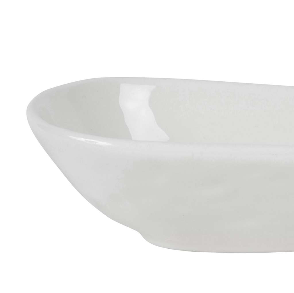 Die Obstschale aus Keramik ist 33 cm lang, 11 cm breit und 8 cm hoch.