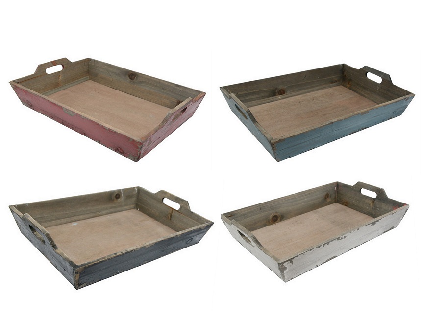 Dieses Holztablett mit Patina besticht durch sein zeitloses Design und ist vielseitig einsetzbar. Nutzen Sie es, um Speisen zu servieren oder als Dekotablett und wählen Sie aus den Farben Antikschwarz, Antikweiß, Antikrot und Antikblau.