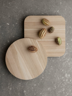 Die Palua - 2er Set Eichenboards von Blomus sind handgefertigt aus massiver unbehandelter Eiche. Das hochwertige Material verspricht Ihnen eine lange Lebensdauer. Die Boards sind in zwei verschiedenen Formen erhältlich, können separat und zusammen serviert werden. Beim Zusammenstellen der beiden Eichenboards entsteht fast eine einheitliche Form. Durch die einfach erhöhte Konstruktion kann das Tablett auch als idealer Untersetzer für Pflanzen oder Skulpturen verwendet werden. Ein weiterer alltäglicher Gebrauch der Palua Boards ist, dass diese auch den Obstkorb oder Servierteller ersetzen. Aufgrund des ständigen Kontakts mit Lebensmittel ist ein Ölen des Holzes unerlässlich, dies schützt das Holz vor Essensgerüchen und Bakterien, hierzu wird vom Hersteller Sonnenblumenöl empfohlen. Zur Reinigung können die Palua - 2er Set Eichenboards von Blomus mit warmen Wasser abgespült werden. Einweichen in Wasser soll vermieden werden, da sonst Risse entstehen können. Das runde Board hat die Maße Höhe 4,7cm, Durchmesser 25 cm, das eckige Board hat eine Höhe von 2,7 cm, Breite von 25 cm und Tiefe von 25cm