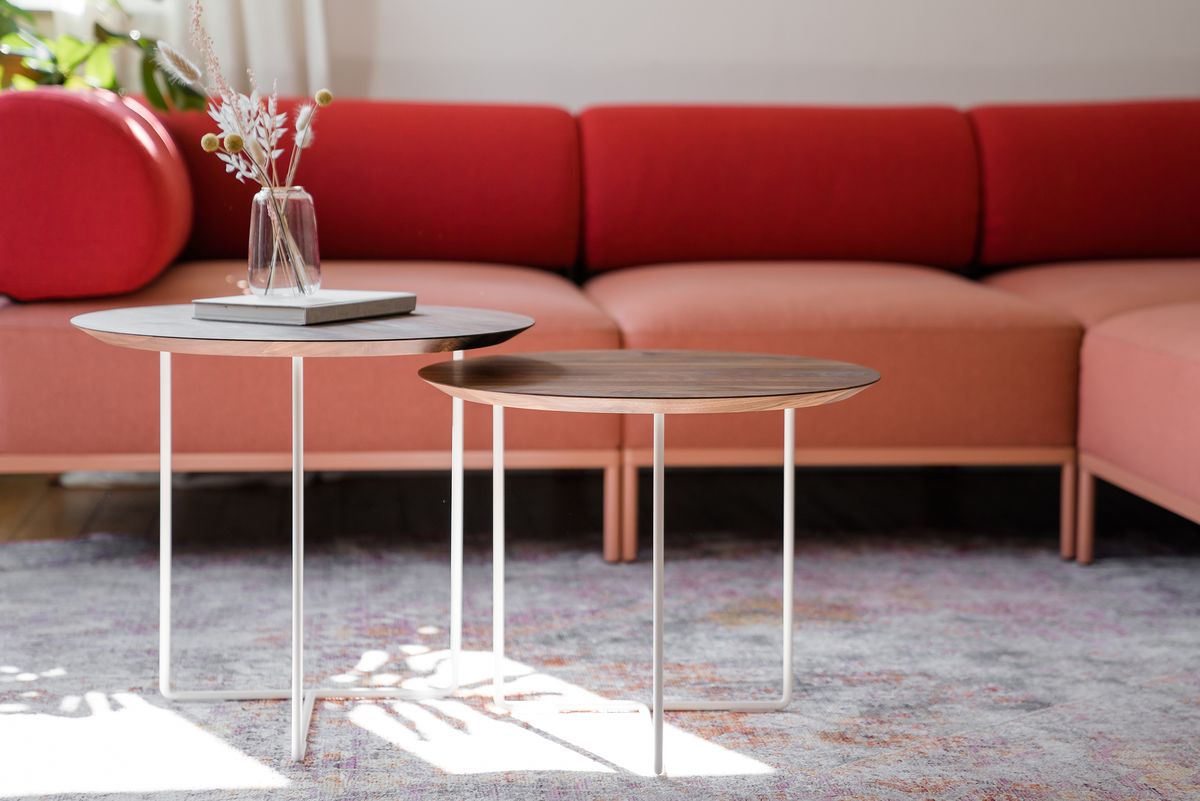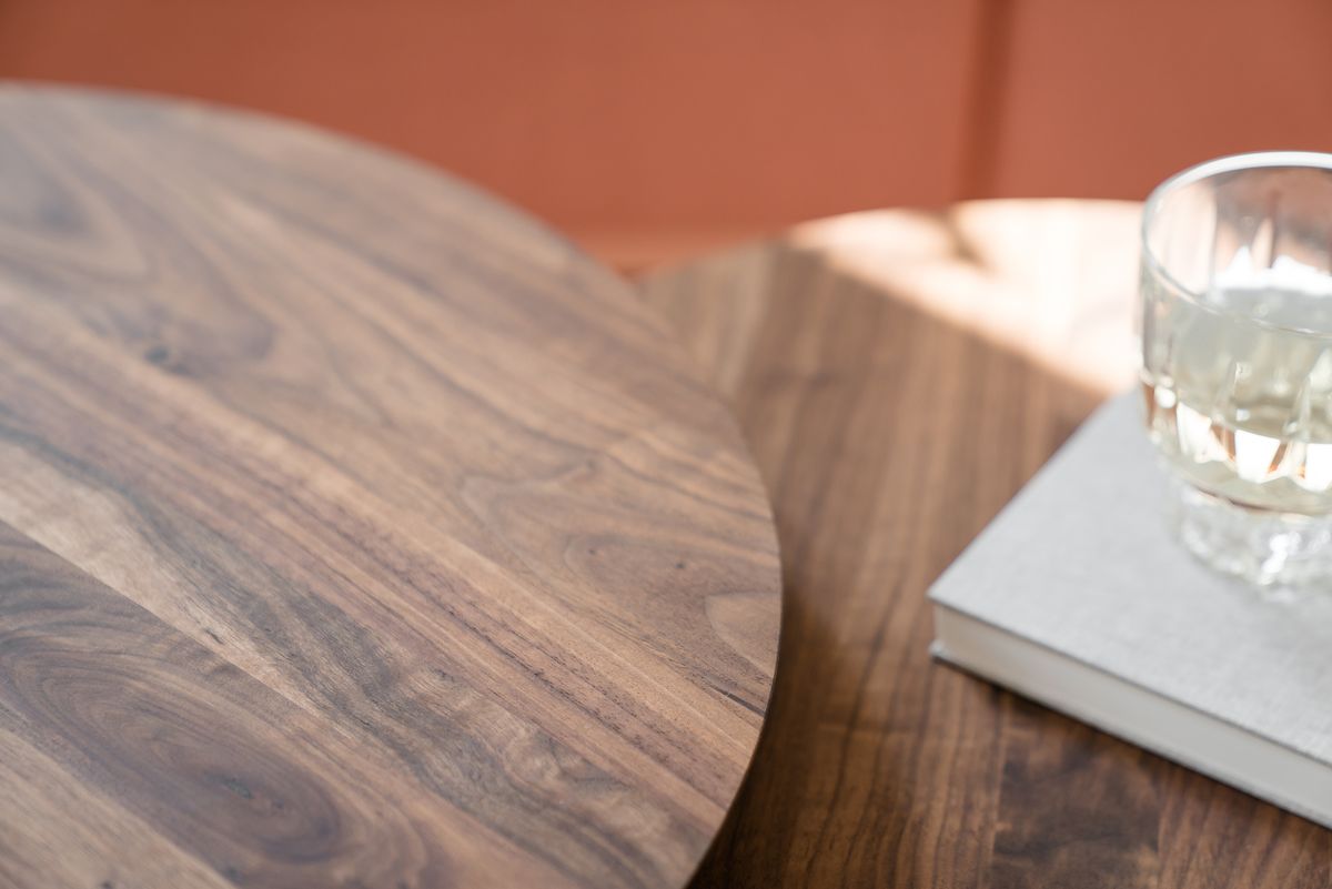 Die beiden Größen lassen sich durch ihre verschiedenen Höhen perfekt miteinander kombinieren - so entsteht eine ausdrucksstarke Tischkombination. Aber auch mit dem Metallbeistelltisch aus der Kollektion Solid & Grid von weld & co. lassen sich harmonische Kombinationen erstellen. Die beiden Größen haben jeweils genügend eigen Gewicht, um auch auf hochflorigen Teppichen stabil zu stehen, sind aber gleichzeitig leicht genug, um flexibel überall paltziert zu werden. Das Untergestell steht Ihnen in der Farbe weiß oder schwarz zur Auswahl, so bietet der Nussbaum Beistelltisch noch mehr Kombinationsmöglichkeiten.