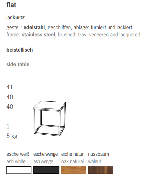 Produktinformationen "Beistelltisch Flat Quadratisch Stahlrohr pulverbeschichtet schwarz nussbaum"