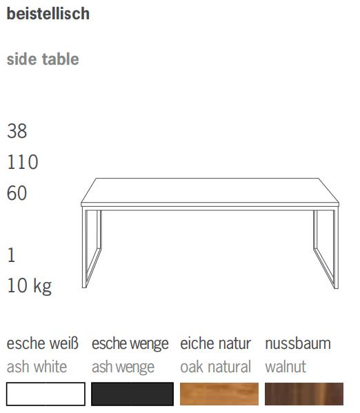 Produktinformationen "Beistelltisch Flat Rechteckig Lang Schwarz/Esche Wenge"