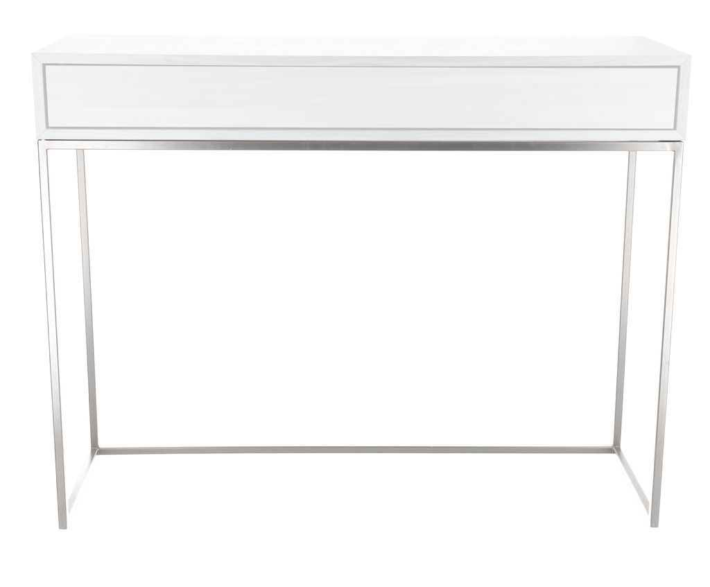 Produktinformationen "Konsolentisch Dina mit Schublade Edelstahl/Esche Weiß"