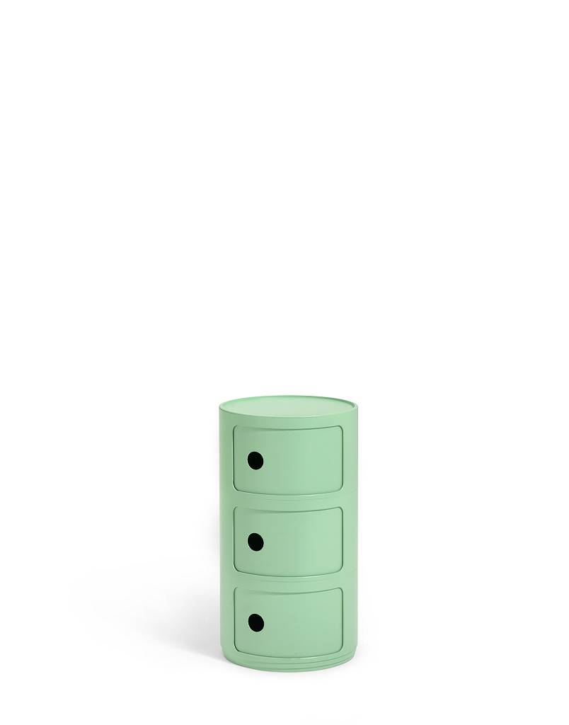 Der Componibili Bio Container mit drei Ablagefächern von Kartell sticht durch sein rundes Design hervor. Das Besondere ist, Sie können den Container als Aufbewahrungsmöbel oder als Beistellmöbel am Bett verwenden. Ganz einfach lässt sich der bio Container aus drei Ablagefächern durch Grifflöcher öffnen,. Die Maße der Aufbewahrungsbox sind 58 cm hoch und der Durchmesser ist 32 cm. Das Material ist Biomaterial aus erneuerbarer Quelle, es ist stabil und umweltfreundlich. Das runde Design passt sich in jedem Zimmer in Ihrem Zuhause an und die bunte Farbauswahl aus gelb, rosa, grün oder cremefarben lässt Freude verspüren. Der Componibili Container gibt es bei uns im Shop auch in den Farben schwarz oder weiß mit zwei Ablagefächern.