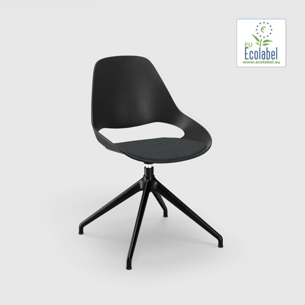 Der Schreibtischstuhl FALK von HOUE vereint elegantes Design mit umweltfreundlichen Materialien. Die pulverbeschichteten Füße aus schwarzem Aluminium verleihen ihm eine moderne und zeitlose Ästhetik. Die Sitzfläche aus recyceltem Kunststoff betont seinen umweltfreundlichen Charakter und macht ihn zu einer verantwortungsbewussten Wahl für Ihr Zuhause oder Büro. Erleben Sie maximalen Komfort mit dem drehbaren Schreibtischstuhl FALK. Die ergonomische Sitzschale passt sich perfekt an Ihre Körperhaltung an, sei es bei der Arbeit in Ihrem Homeoffice oder während entspannter Mahlzeiten im Essbereich. Wählen Sie aus 9 verschiedenen Polsterfarben, um Ihren persönlichen Stil zu unterstreichen und Ihren Arbeits- oder Essbereich individuell zu gestalten. Dieser Stuhl ist mehr als nur ein Möbelstück – er ist ein Symbol für Funktionalität und Ästhetik. Als OEKO-Tex und EU Ecolabel zertifiziertes Produkt steht der FALK Stuhl für höchste Qualität und Umweltbewusstsein. Die sorgfältige Verarbeitung und die hochwertigen Materialien gewährleisten eine lange Lebensdauer und anhaltenden Komfort. Investieren Sie in ein Möbelstück, das nicht nur Ihren Arbeitsplatz bereichert, sondern auch Ihre ethischen Werte widerspiegelt.
