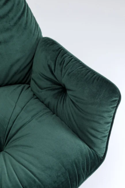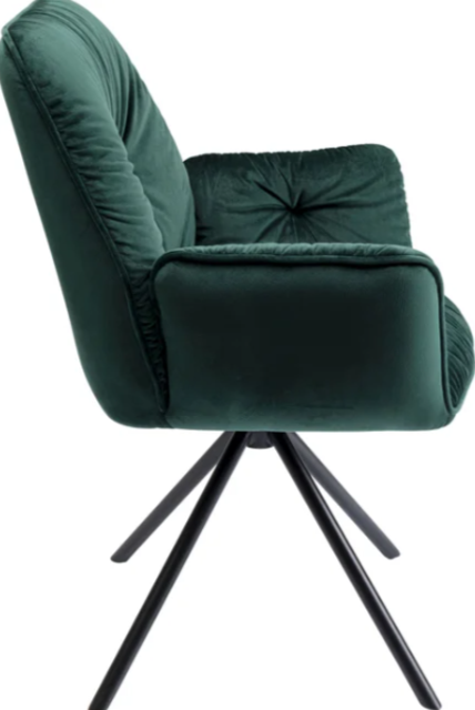 Der dunkelgrüne Mila Armlehnstuhl vereint Komfort und stilvolles Design in einem. Mit seiner Drehfunktion und den weich gepolsterten Armlehnen ist dieser Polsterstuhl der perfekte Begleiter für gemütliche Abende am Esstisch oder als stilvolle Ergänzung im Wohnbereich.