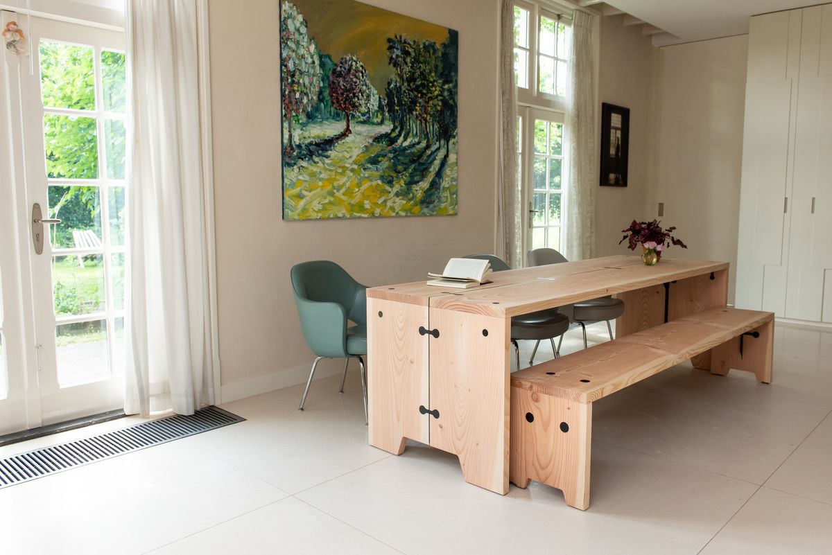 Der Forestry Table - Tisch von Weltevree ist ein atemberaubend schöner und großer Esstisch für die ganze Familie. Das stabile holländische Douglasienholz, aus dem der Outdooresstisch gefertigt ist, stammt aus dem nachhaltigen Staatsforstprojekt. In Zusammenarbeit von Designer Floris Schoonderbeek und Staatsbosbeheer von der staatlichen Forstverwaltung entstand der Holztisch, um die Schönheit des Holzes und die der Natur Ihnen ein Stück näherzubringen. So präsentiert sich der formschöne Tisch robust und edel zugleich. Mit dem schlichten Design und dem warmen Holzfarbton bringt er sich in jeden Wohnraum ein und wird zu einem charakteristischen Akzent, das begeistert. An der großen Tafel finden alle zusammen Platz, ob 6, 8 oder auch 12 Personen, der Forestry ist in 3 Größen erhältlich und hat somit genügend Platz für die ganze Familie und Ihre Liebsten um gemeinsam den Abend zu genießen.