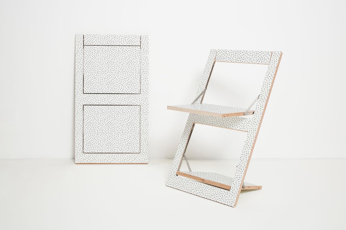 Der Fläpps Klappstuhl von AMBIVALENZ ist ein sehr einfach verstaubarer, individueller und salonfähiger Stuhl. Mit seinem einzigartigen Design und seiner hohen Bequemlichkeit macht es ihn zu einem Prunkstück von einem Klappstuhl. Alleine für den Fläpps wurde ein ganz leichter Klappmechanismus entwickelt, welcher Ihnen das Auf- und Zuklappen des Stuhls so einfach macht wie nie zuvor. "Klappt man oben, klappt es unten" sind die Wörter mit denen der Hersteller den Mechanismus des Klappstuhls betitelt. Diese sorgt nämlich dafür, dass bei dem Öffnen und Schließen das Fuß- und Sitzteil synchron ausgefahren werden. Durch seine flexible Rückenlehne und des leichten Federns wird der Komfort nur noch mehr gesteigert. Der 20 mm flache Stuhl bietet viele Möglichkeiten den Stuhl in jeder kleinsten Ecke Ihres Hauses zu verstauen und ihn jederzeit hervorzuholen, falls er benötigt wird. Der Klappstuhl ist auch bedruckt erhältlich was Ihnen ermöglicht, den Fläpps gemütlich an die Wand zu hängen und ihn, falls er gerade nicht benutzt wird, als Wanddekoration zu benutzen. Dies unterstreicht nur die Vielseitigkeit des Stuhls. Der Fläpps ist nicht nur ein Klappstuhl, er ist ein multifunktionales Dekorationsobjekt. Der Stuhl ist nicht nur einseitig, sondern auch zweiseitig bedruckt erhältlich.