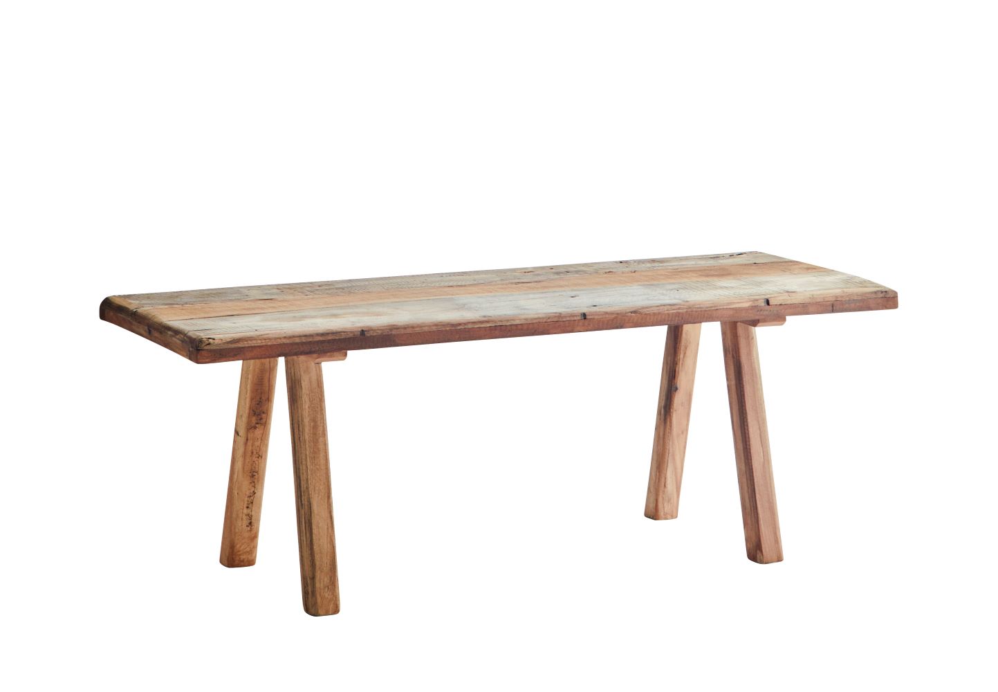 Die rustikale Holzbank aus Recyclingholz von Madam Stoltz vereint Nachhaltigkeit, Handwerkskunst und rustikales Design in einem Möbelstück. Jedes Exemplar ist ein Unikat, das durch die Verwendung von recyceltem Holz eine Geschichte erzählt. Stabil, funktional und ästhetisch – eine Bank, die gleichermaßen praktisch wie dekorativ ist.